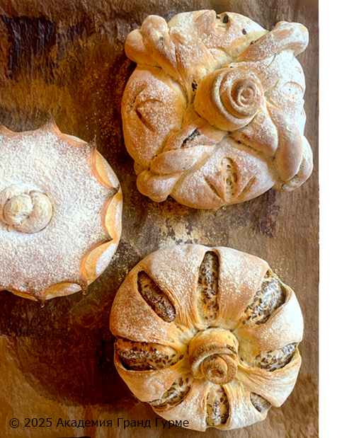 Учебната програма включва усвояване на: - спецификата, значението и подбора на суровините за получаване на хляб; - професионални методи за замесване на различни видове и типове хлебни теста - пшеничени, пълнозърнести, ръжени, безглутенови; - професионални методи за приготвяне кисели закваски (квасове) от различни видове брашна; - методи за управление и контрол на ферментационните процеси при производството на различните видове и типове хляб; - методи на студена ферментация; - методи за управление и контрол на процеса на изпичане на хляба при различни видове пещи; - професионални техники за обработване и оформяне на различни типове хлебни теста и хлебни теста с различна степен на хидратация; - професионални техники за хлебна декорация.